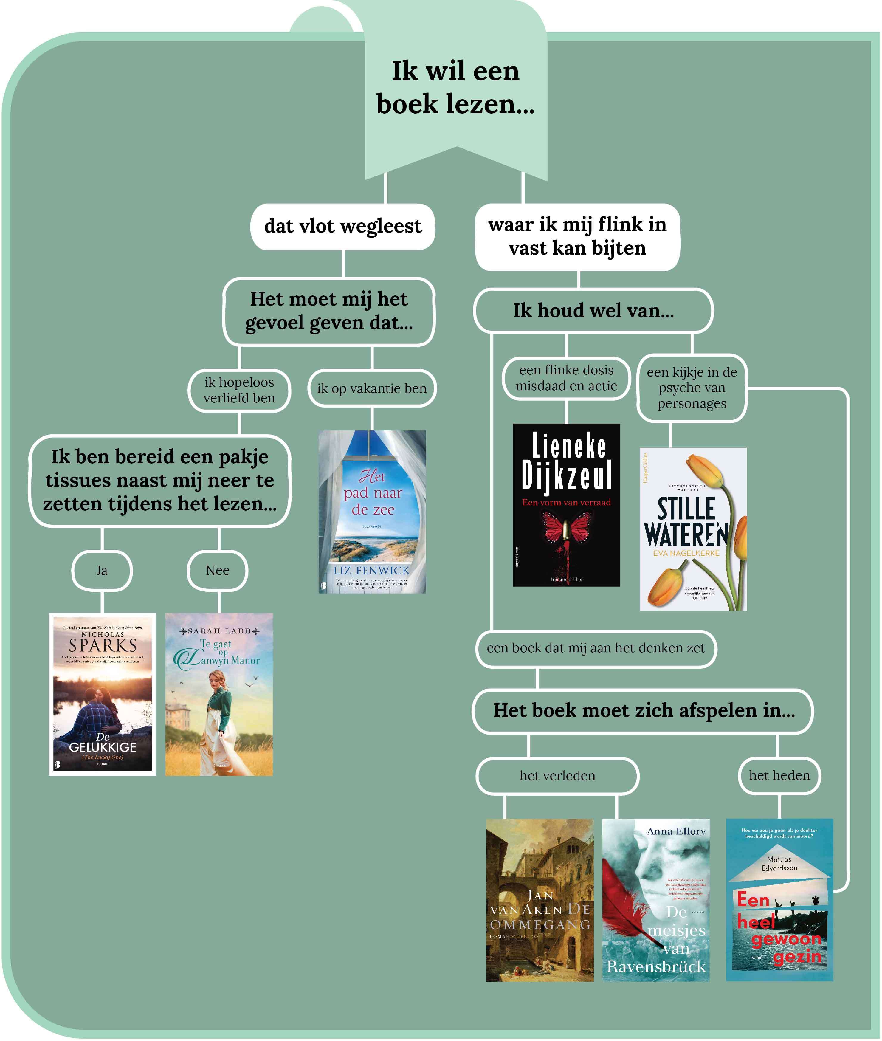 Weet je niet welk boek uit de mei-selectie je absoluut niet mag missen? Beantwoord de vragen hieronder en je krijgt vanzelf het perfecte boekadvies. Veel lees- en/of luisterplezier!