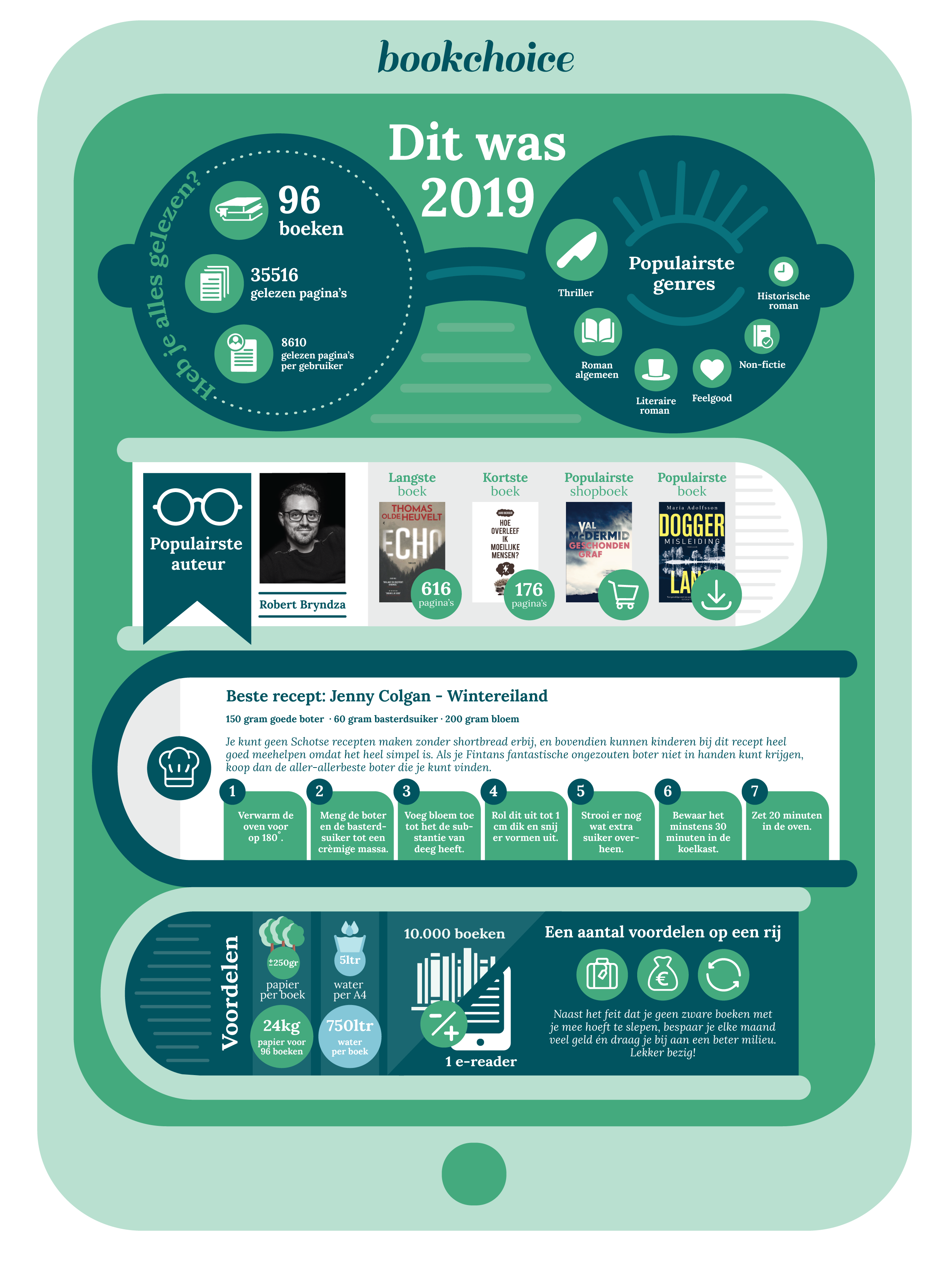 Als je alle boeken uit de selectie én onze shopboeken zou lezen, zou je maar liefst 352 boeken aan je digitale boekenkast hebben toegevoegd in 2019. Daar ben je wel even zoet mee!